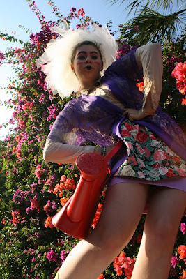 I'm wearing a floral dress from Urban Outfitters, a blue dress (open, worn as a vest) from Forever 21, ambiguous white tights, shoes my mother gave me, and a scarf from our store (see the sidebar).
